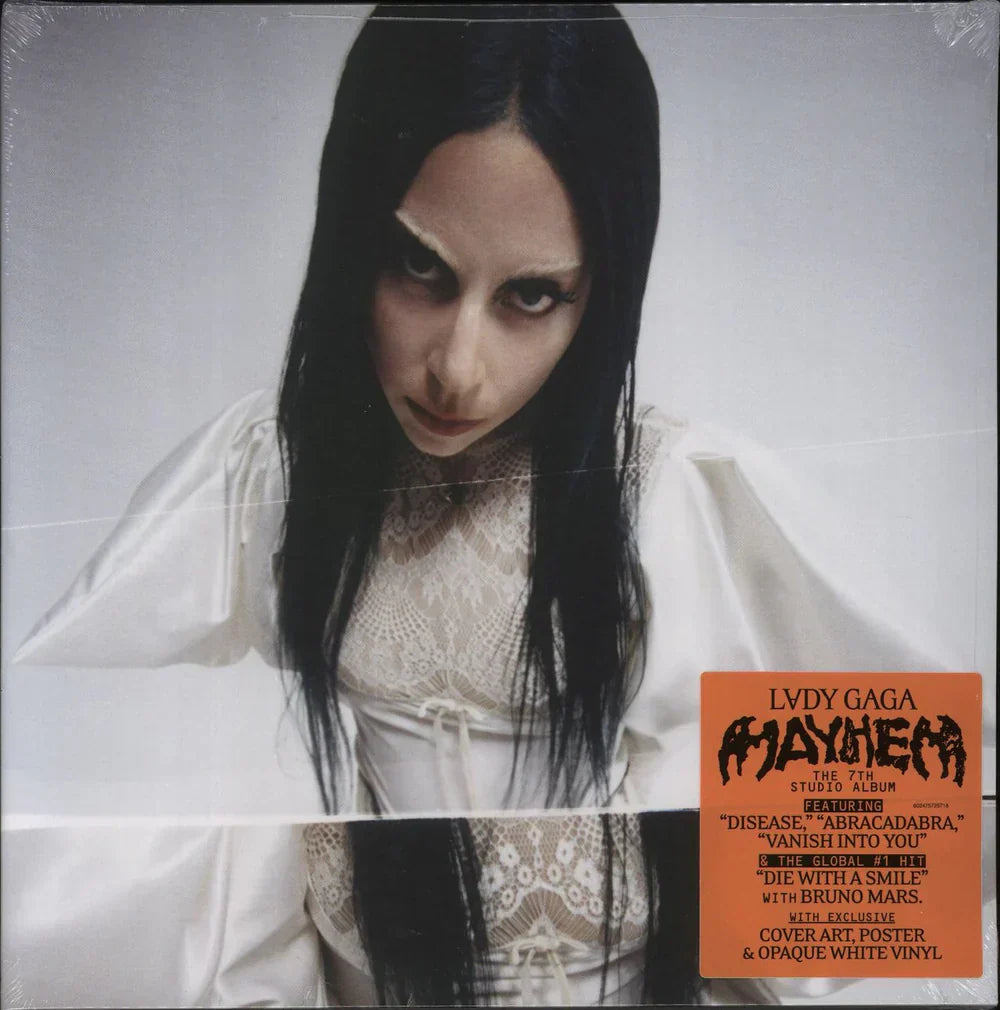 Discover the elegance of Mayhem with this white vinyl edition — a visually stunning and sonically powerful release from Lady Gaga. Featuring two single-sided LPs with exclusive etched artwork on the reverse sides, this edition is a perfect blend of art and attitude.